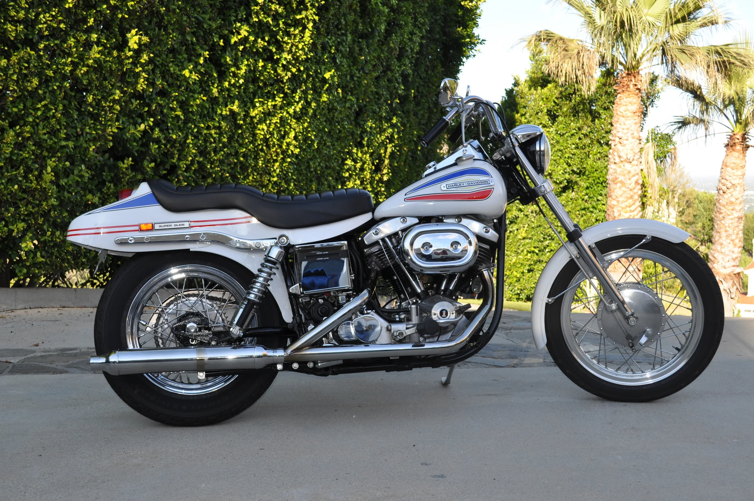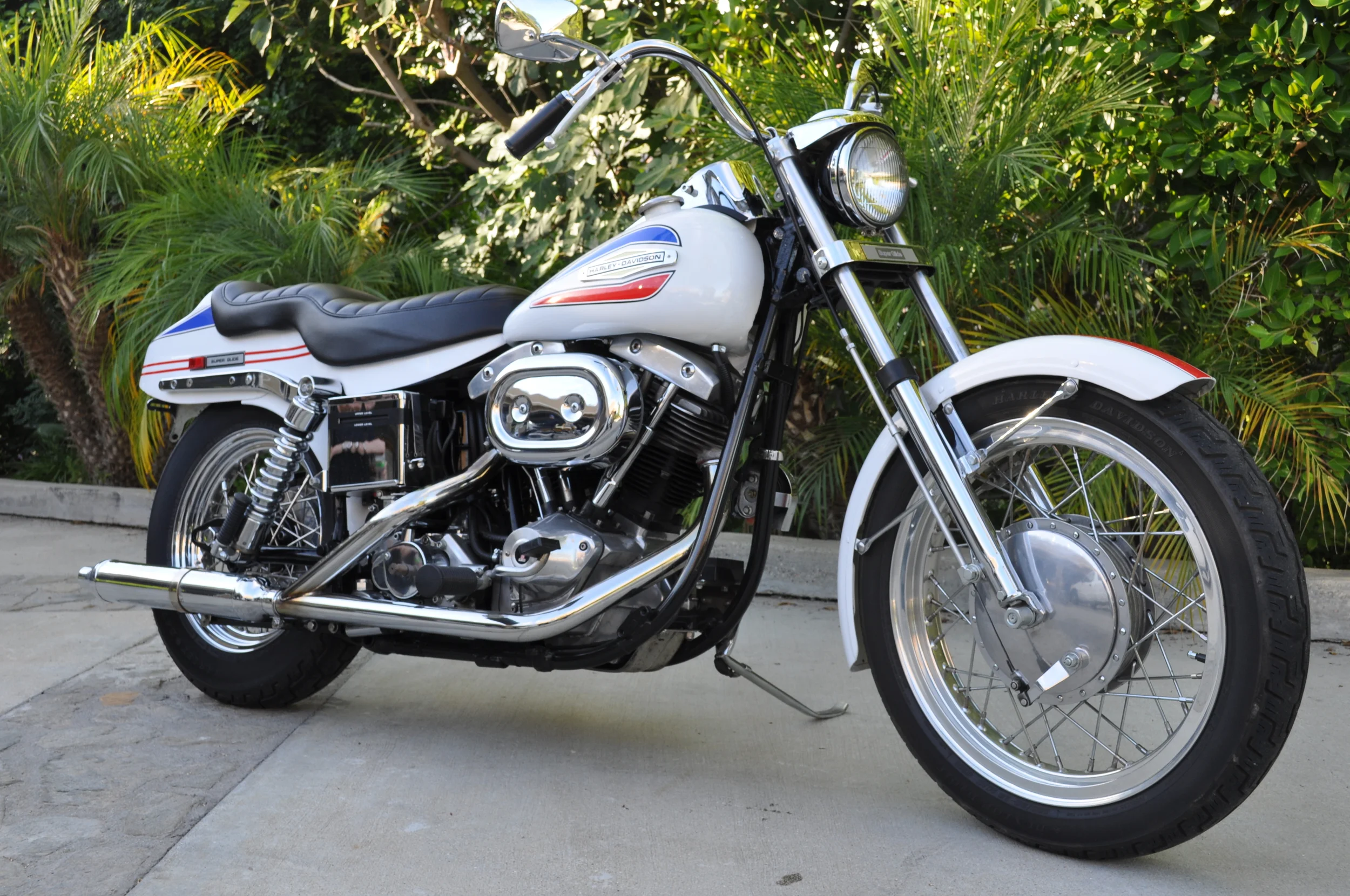 AMF Corporation recognized that the central products of the Harley Davidson company were the heavy street bikes, the FL’s and the XL’s. They also realized with the introduction in 1969 of the paradigm shifting Honda CB 750 that in order to compete they had to do something with their core street bike lineup. This is where Willie G Davidson, the grandson of founder William Davidson, enters into the history as the director of styling for Harley-Davidson. AMF approached Willie G and asked him to come up with a custom motorcycle that would bring some of the elements of the strong custom motorcycle scene together into a factory custom. But AMF put some limitations on Willie G. Apparently they said you can use anything available from any of the bikes currently in production as well as anything from the fiberglass production plant used in the golf cart manufacturing company that AMF acquired as part of their purchase of Harley-Davidson.