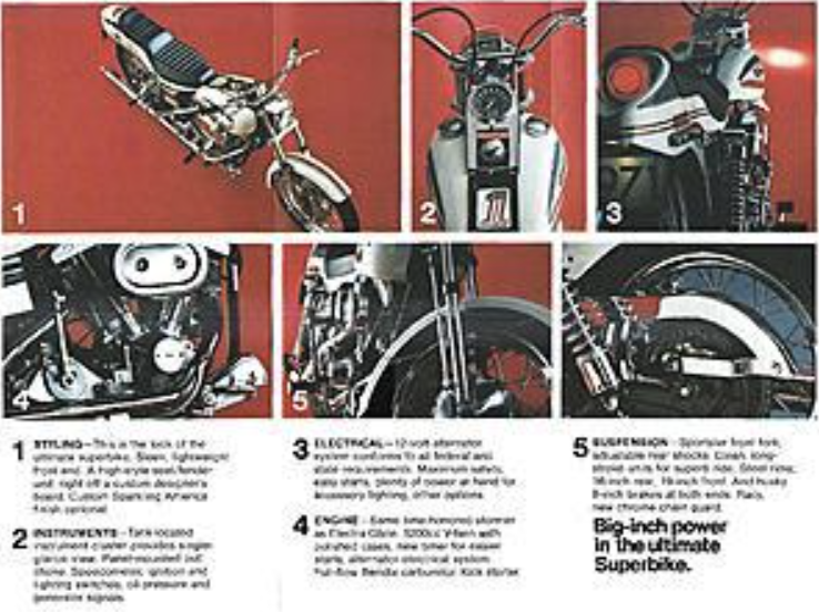 Entering the secondary showroom my first viewing of the bike was from the rear. Looking along the left rear of the bike was the huge chrome primary cover and to the right was the “double barrel” shotgun exhaust aiming back at me. Instead of the traditional fender wrapping all the way over the top and halfway down the back of the rear wheel and tire, the rear cowling came across the top with a circular red tail light in the middle. As I approached the motorcycle from the right rear the overwhelming desire to mount to this steed gave me the courage to ask the salesman if I could sit on the bike. He hesitated and then asked if I could afford such an expensive machine. I asked how much it was and he responded that it was about $2700 out the door. Swallowing the sticker shock, I answered a different question by saying “well, I have my own landscaping business”. This was true in that I mowed a number of lawns in my neighborhood. I was able to get the work by stuffing mailboxes with mimeographed advertisements that said “Phil’s Landscaping-I will mow your lawn for less money and do a great job”. That didn’t answer the question as to whether I could afford the price of the bike but seemed to satisfy the salesman and he said “okay, hop on her-but be careful. That’s a man’s machine!”