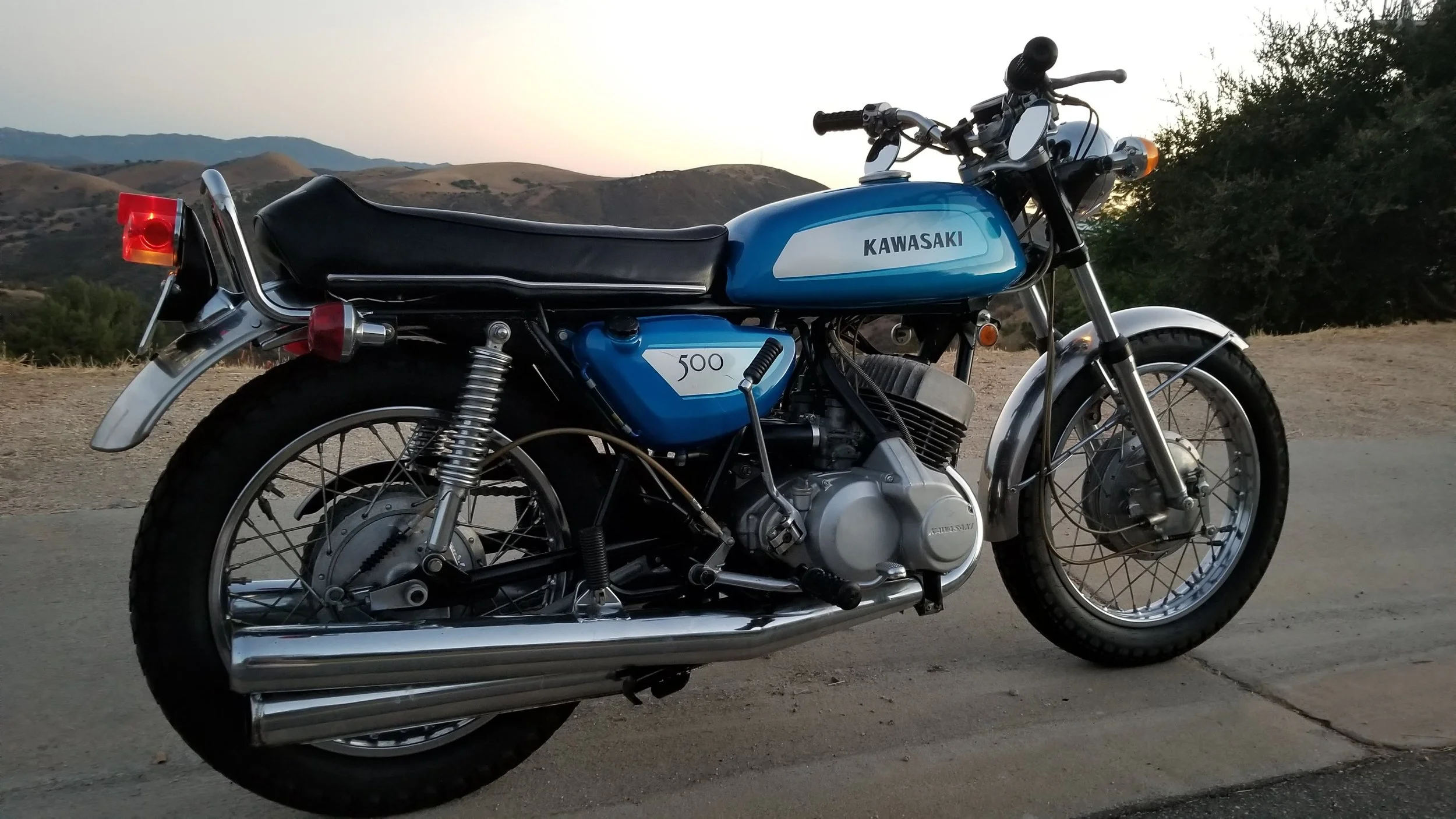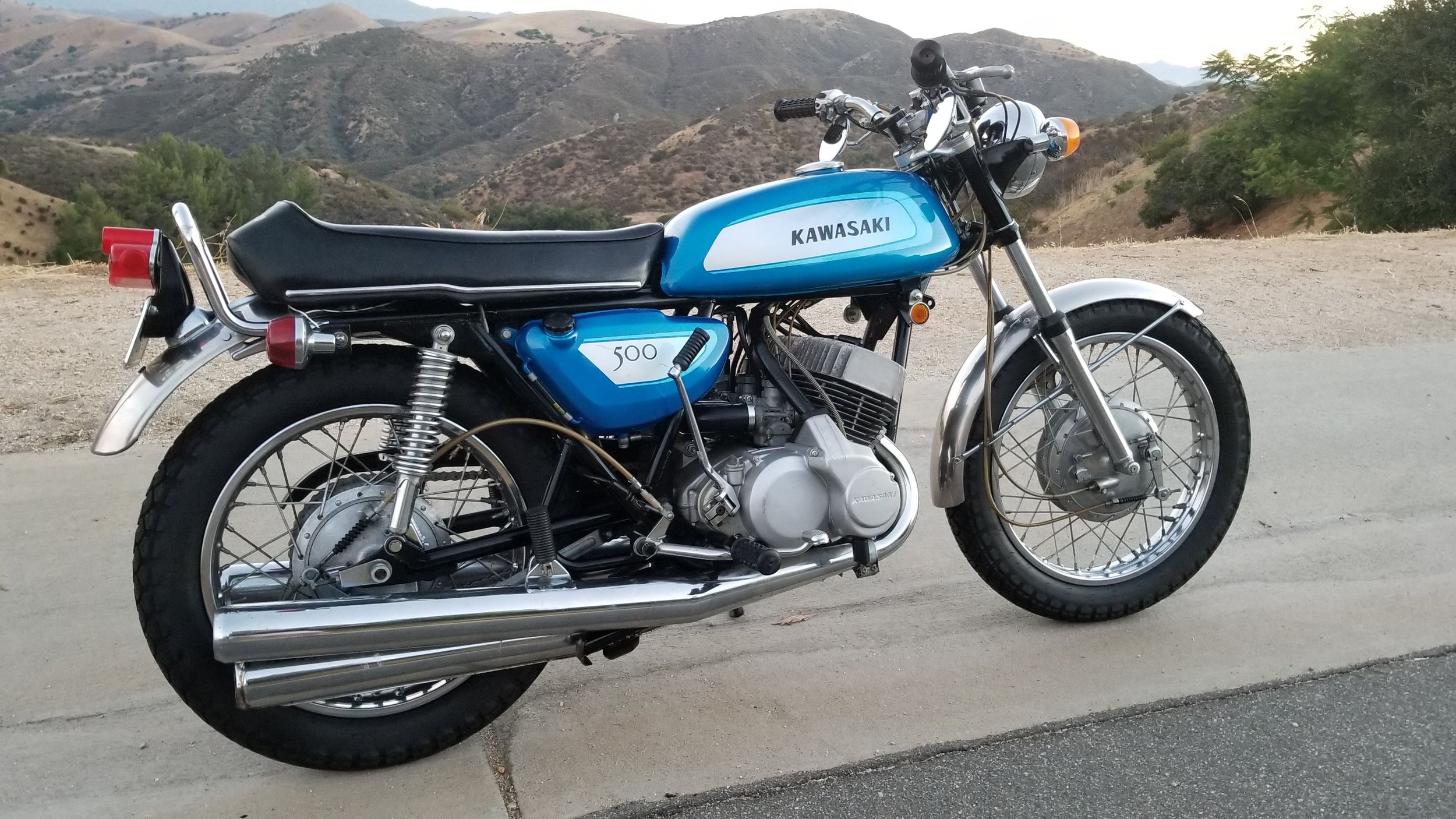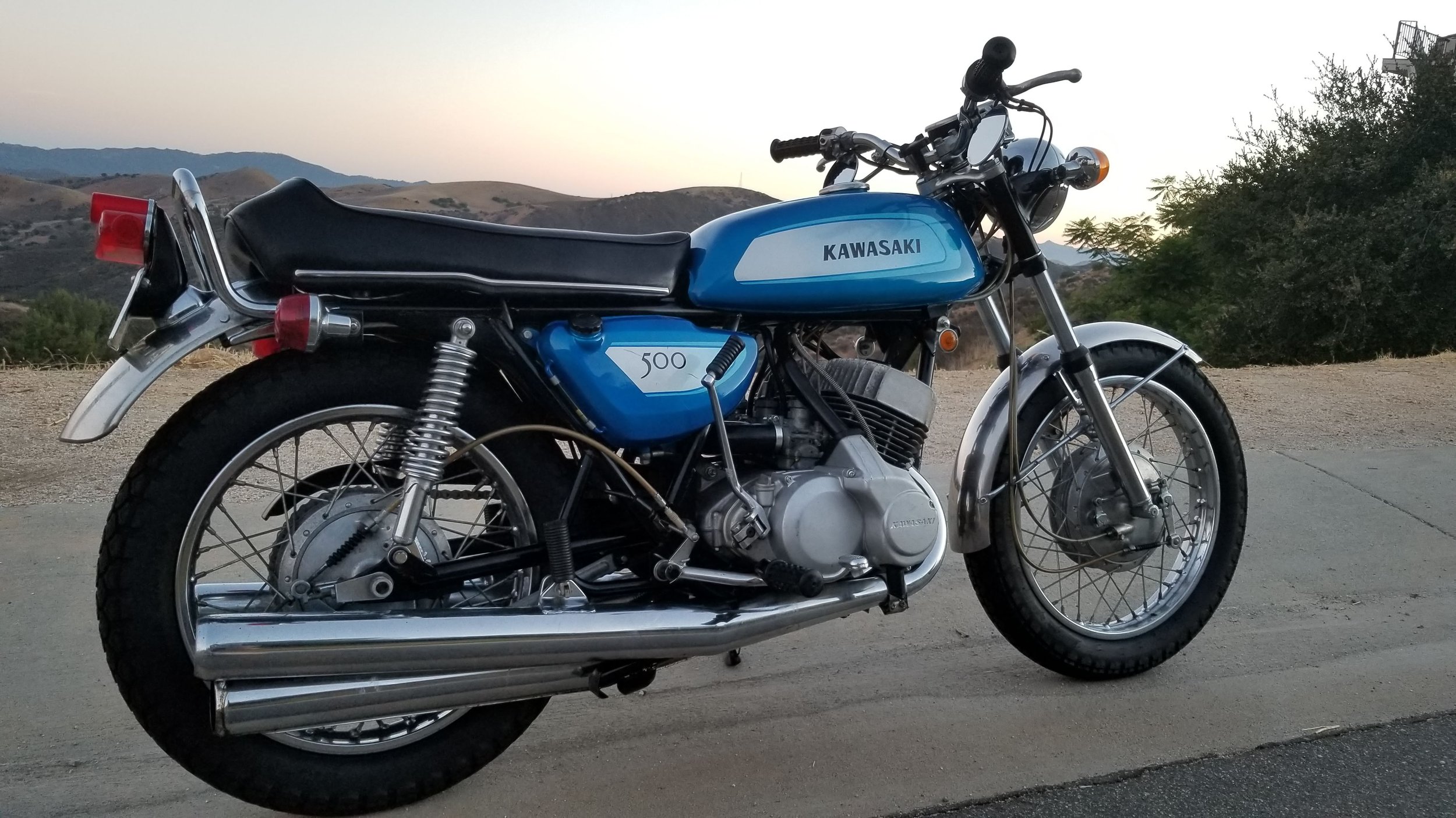After I went home I pulled out my collection of motorcycle magazines and found the article on the 1969 model to read about the bike again (because there was no significant difference between it and the 1971 model). The article starts with the following: “Kawasaki’s new 500 has got to be the kinkiest street bike ever! It’ll raise the hairs on the back of a rider’s neck, or turn them gray in 13 seconds flat. At top speed, it will run faster than the Osaka Express. It will trounce any mass production motorcycle that comes in full street trim regardless of displacement. The stench of rubber smoke and a 100 foot long black strip give ample evidence that it has departed...” I was hooked and completely enamored dreaming of the adventures this machine and I would have together. You would’ve thought that after having nearly killed myself on the thing I would’ve run in the opposite direction – and you would have been wrong. I was actually more in love!