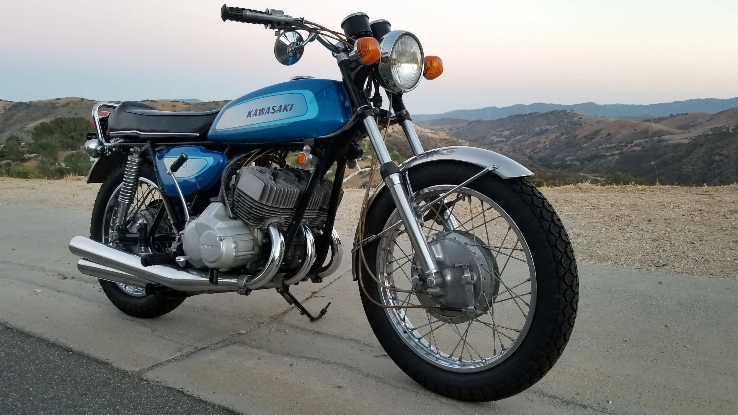 I actually remember pulling the Cycle World magazine off the newsstand in the spring of 1969. The reason I remember it was that it featured a motorcycle on its cover that I had seen just a few days earlier at the Rick Case Kawasaki dealership in Cleveland Ohio. I was 14 ½ years old – and I say 14 ½ because it meant that I was only 12 months away from getting my driver’s permit at 15 ½ years of age. The cover of the magazine had a picture of a unique and revolutionary motorcycle on its cover: the 1969 Kawasaki 500 Mach 3. The bike pictured had three cylinders stretched horizontally across its frame with a British style tank updated with a modern sleekness and a raked front end that portended its power and athleticism. The picture was sex on two wheels. A young man in early adolescence is full of hormones and a nature that drives him to penetrate the world. When I saw that picture on the cover of Cycle World of the 1969 Kawasaki 500 three cylinder beast of a machine I couldn’t think of a better device to do it on.